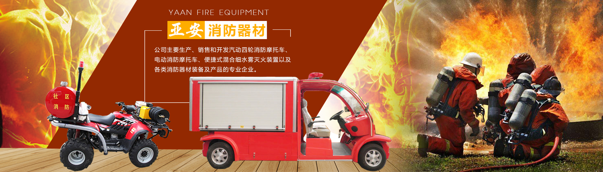公司主要生產(chǎn)、銷售和開發(fā)汽動四輪消防摩托車、電動消防摩托車、便捷式混合細水霧滅火裝置